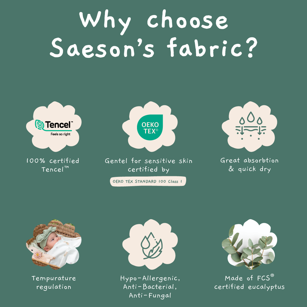 Experience comfort and freedom of movement with Saeson’s Comfy Jumpsuit, crafted from Tencel fabric that adapt to your baby’s body temperature. The softest elastic selected by Saeson ensures that your baby’s arms and legs are not strained, making it a comfortable fit for all-day wear. The set includes a special design hat that adds a touch of fun to your little one’s wardrobe.